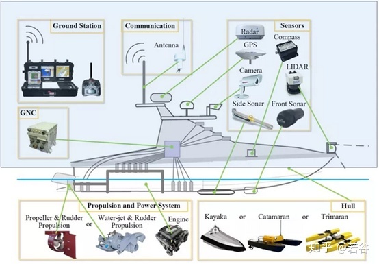 導(dǎo)航系統(tǒng)(Navigation system)。提供船舶的位置、航向、航速、加速度等實(shí)時(shí)的信息,感知周邊態(tài)勢(shì)。信息源來(lái)自艇上的各類傳感器,如導(dǎo)航雷達(dá)、陀螺、衛(wèi)星定位系統(tǒng)、光學(xué)系統(tǒng)、聲吶、海流風(fēng)流測(cè)量等等。